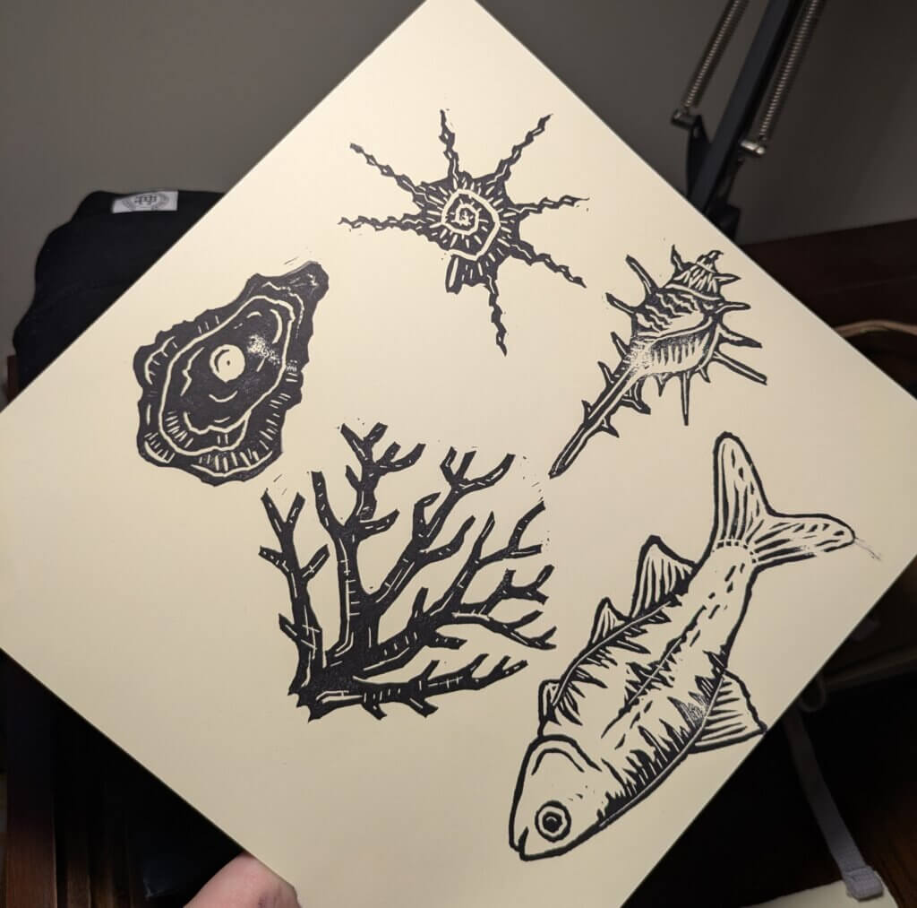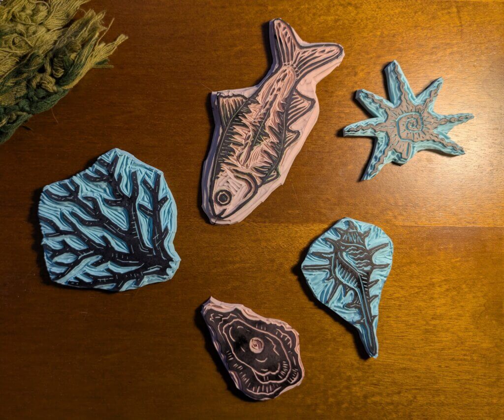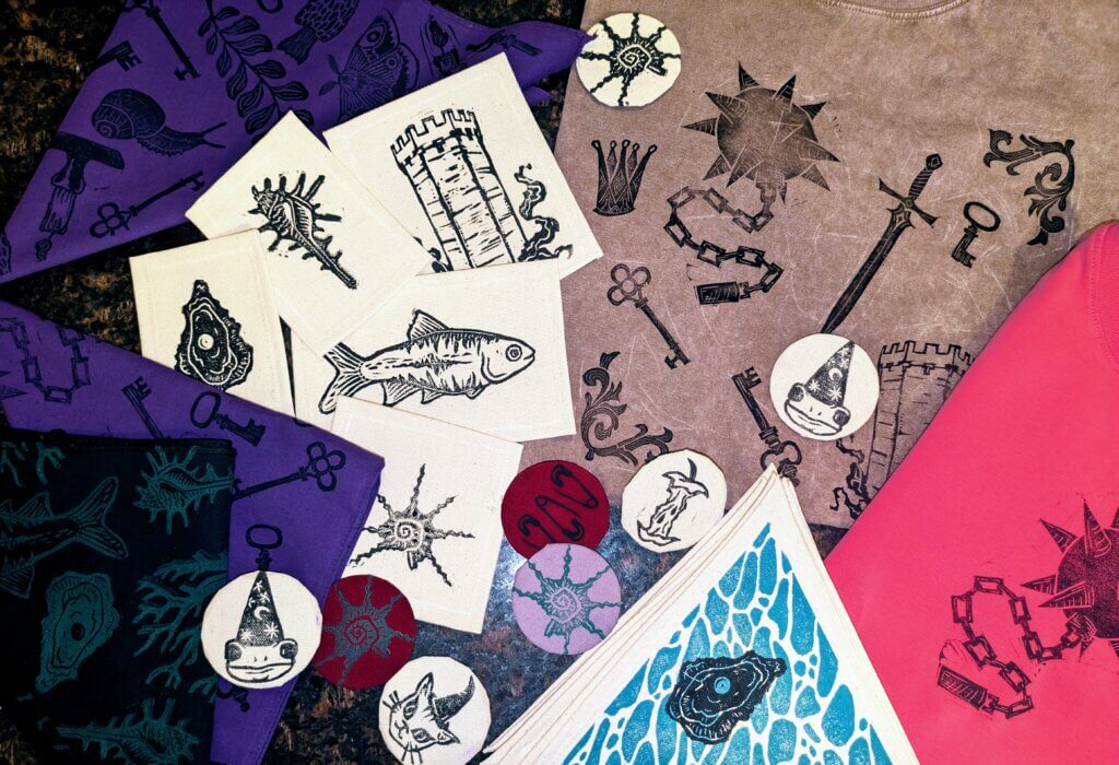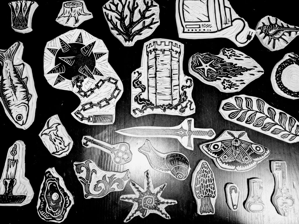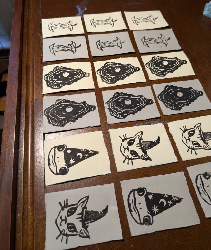 GalleryHand-carved linoleum block stamps22″x22″ BandanasHand made patches on embroidered on jacket2.5×3.5″ Glass FramesHand-carved linoleum block stamps – Nautical CollectionHand-carved linoleum block stamp – Medieval Collection2.5×3.5″ Glass FrameMy cat Miko
